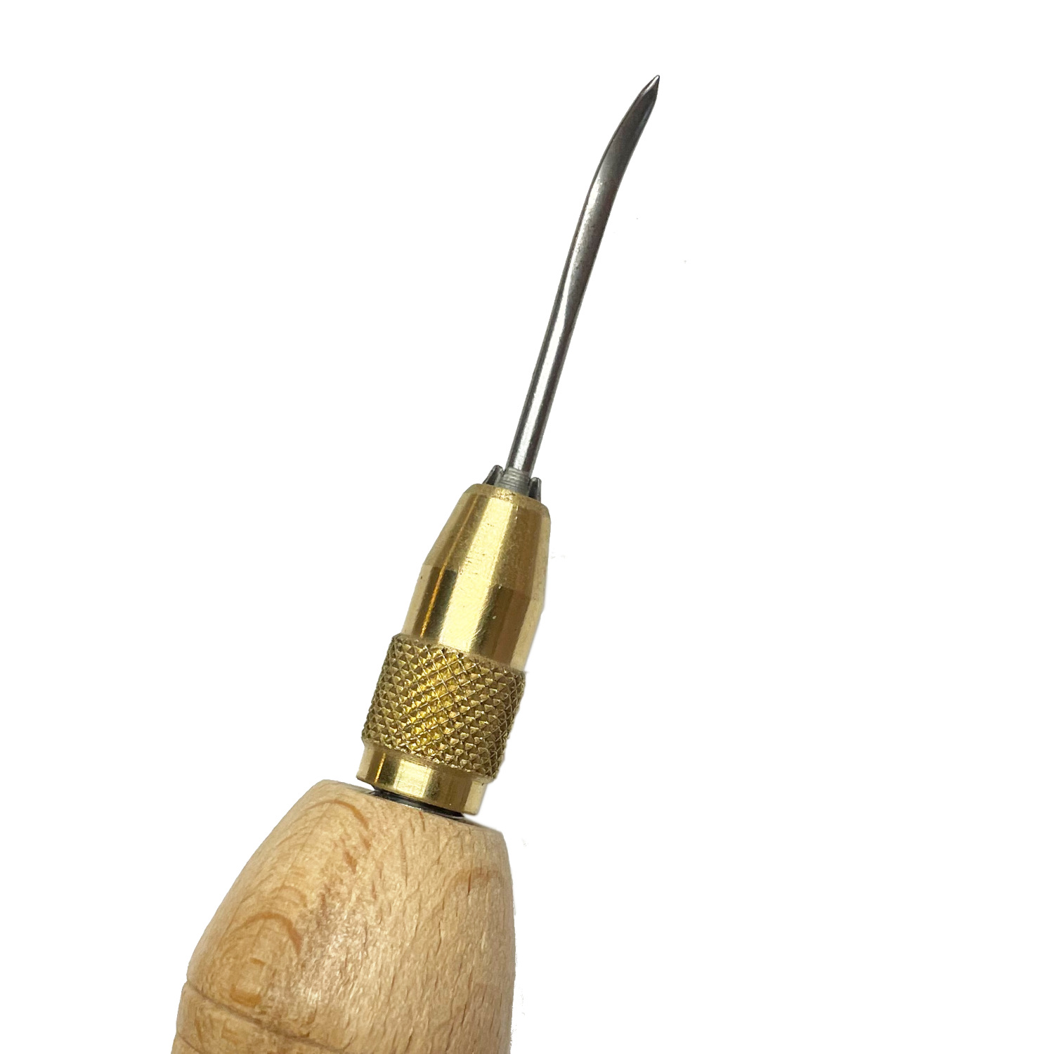 Ce manche en bois dur est conçu pour accueillir différentes lames d'alêne grâce à son système à vis en laiton massif, qui assure un verrouillage sécurisé et précis. La forme ergonomique du manche offre une prise en main confortable, évitant tout glissement lors de l'utilisation, même prolongée.