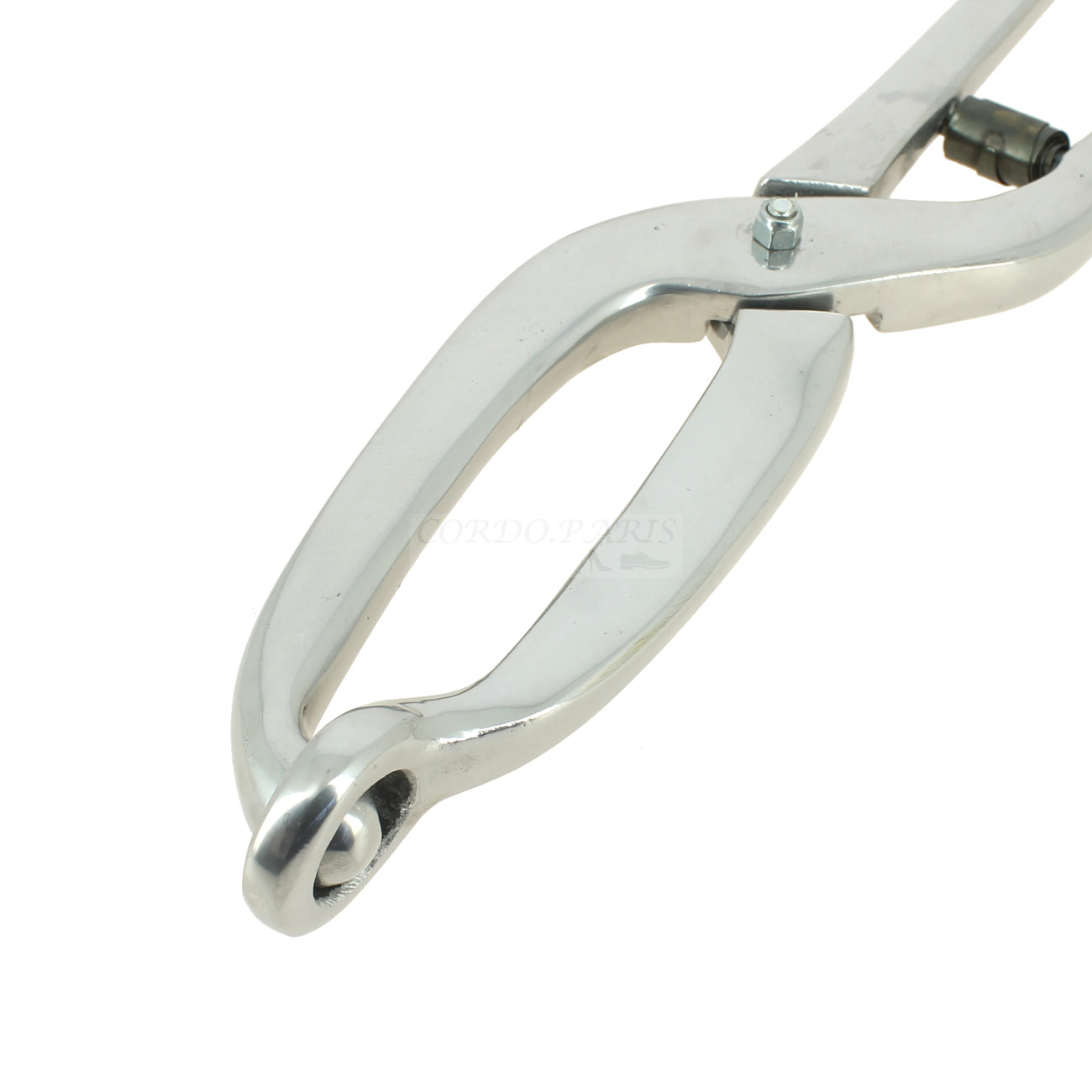 Pinces à cors de cordonnier ou de maroquinier pour former le cuir de la chaussure. Il étire le cuir pour épouser la forme du pied aux endroits difficiles. Longueur 30 cm, poids 390g