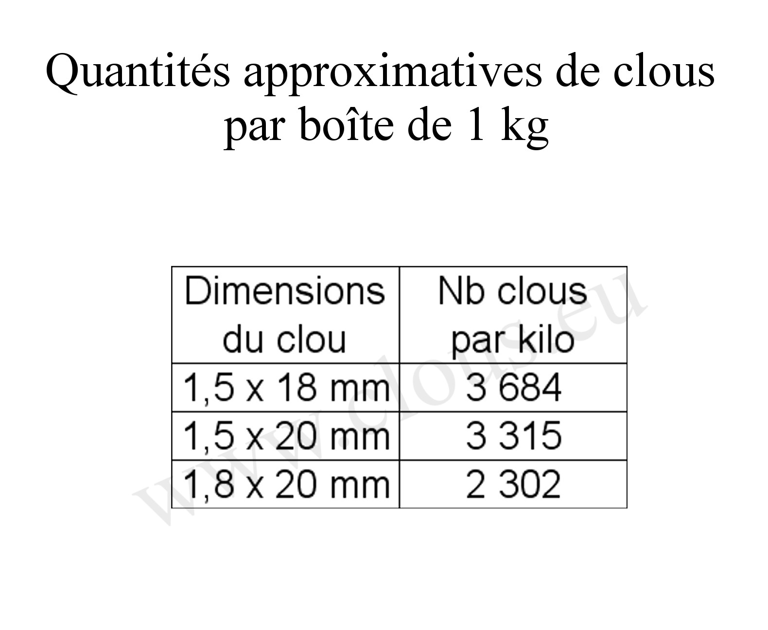 Les pointes en laiton sont vendues par boîtes de 1kg.