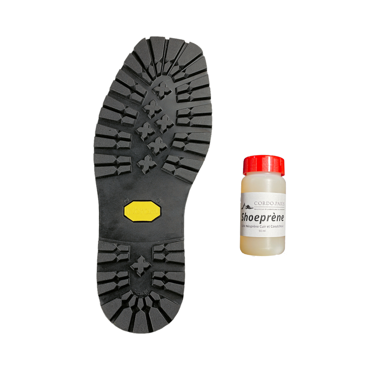 Kit Ressemelage Semelle Vibram Roccia Block 1136 + Colle Shoeprène 50ml